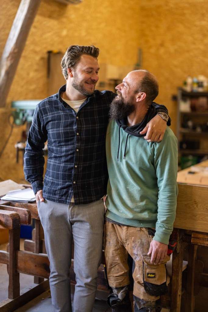 Vi producerer alle vores møbler på vores værksted i en gammel lade på Møn, Danmark af danske ansatte.